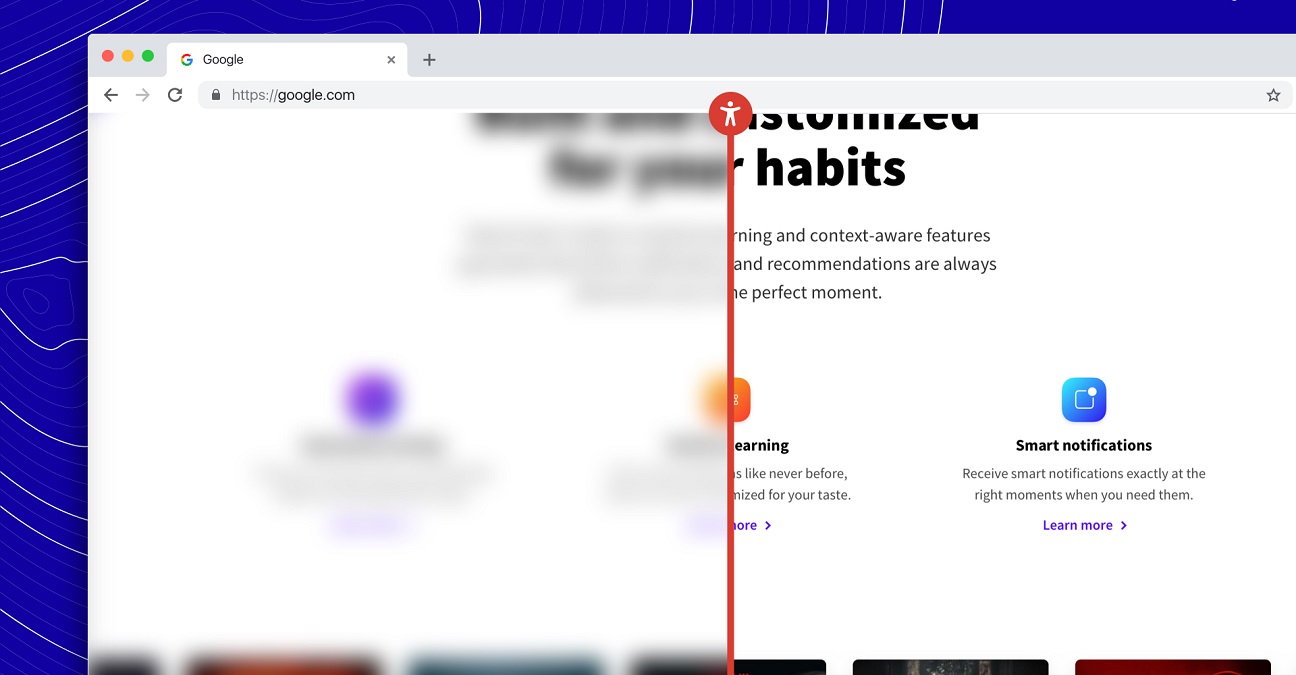 Low vision simulation. A website window is blurred on one side and sharp on the other side.