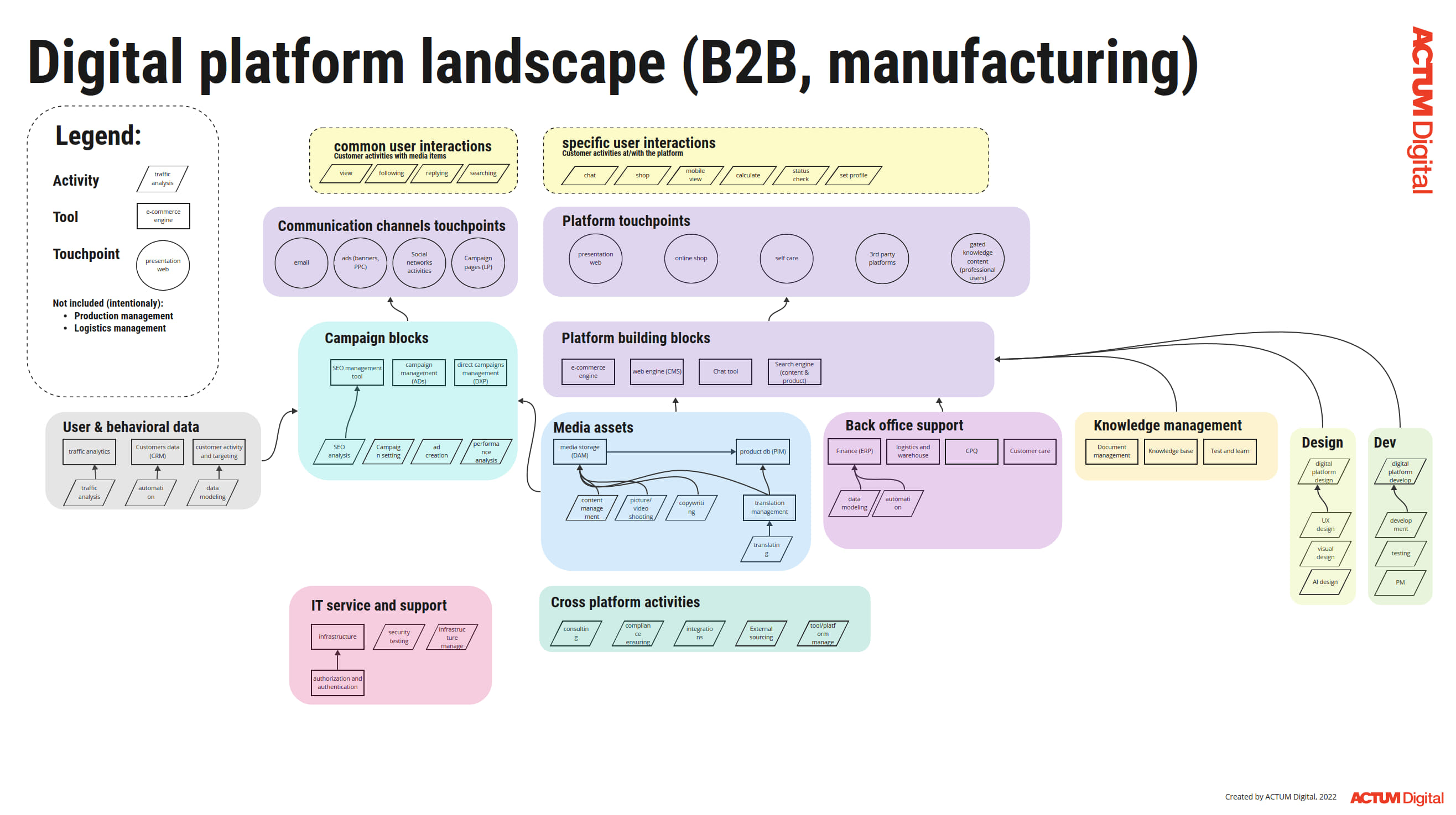 In the words of ACTUM’s CPO and co-founder Ratibor Libal “In essence, a digital landscape is the sum total of all an organisation’s software and hardware, ranging from things like CRMs all the way to how they store their data. However, it also goes beyond a simple catalogue of technologies. It also shows how they all connect together.”