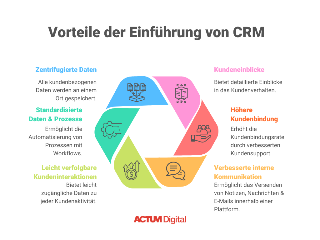 Bei ACTUM Digital zeichnen wir uns durch Full-Service-Implementierungen aus, bei denen wir uns intensiv mit Ihren Prozessen, Herausforderungen und Wünschen auseinandersetzen. Gemeinsam implementieren wir eine CRM-Lösung, die das Leben Ihrer Mitarbeiter vereinfacht und die Kommunikation verbessert.